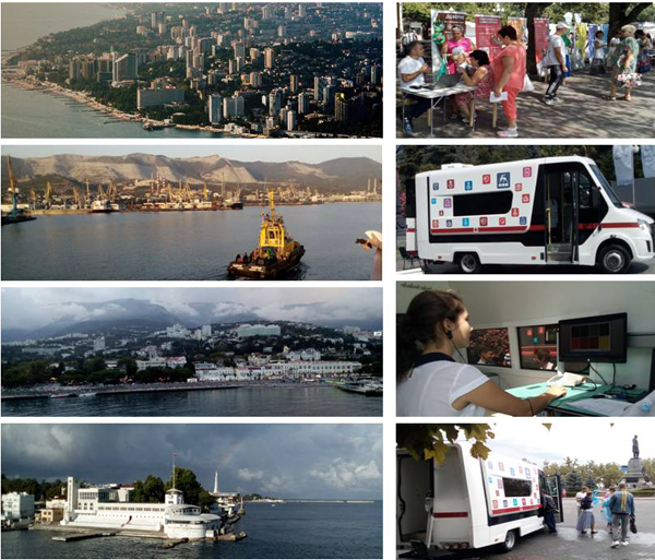 За круизным лайнером по суше перемещался мобильный кабинет ЗОЖ с нашим оборудованием. Везде нас встречали с военным  морским оркестром и провожали с маршем Славянки. В каждом пункте назначения, недалеко от пристани нас уже ждали 30 школьников у автомобиля Газель. А дальше автомобиль отправлялся в путь через крымский мост по трассе Таврида, а корабль вместе с еще 60 врачами продолжил путь по морю. Врачи проводили консультации в больницах, мы  проводили скрининговое обследование детей для целей здоровесбережения с консультацией врача, педагога, психолога.